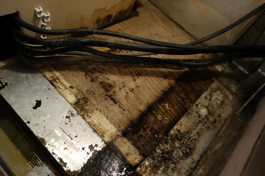 003 Prevost XLII Wet carpet - rotted wood - mold from salon slide roof leak repaired by Excalibur Coach