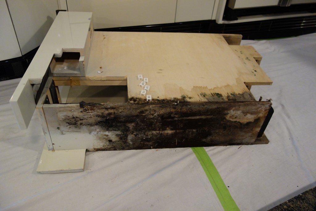 005 Prevost XLII Totaly rotted - molded damaged cabinet caused by salon slide roof leak repaired by Excalibur Coach